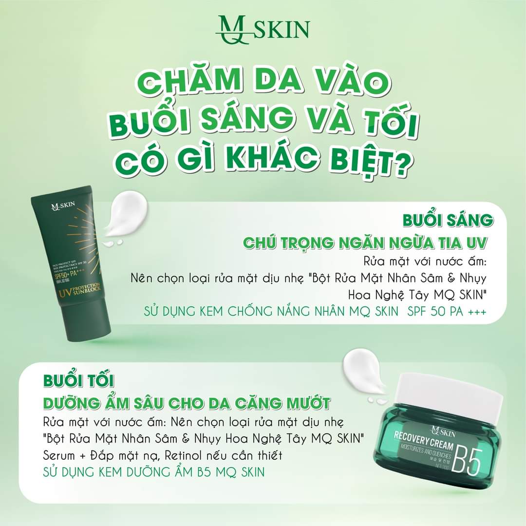 - Kem Face Dưỡng Phục Hồi B5 MQ Skin cung cấp độ ẩm cho da, giúp da luôn căng mướt, hạn chế khô da, làm dịu da, phù hợp với cả những làn da nhạy cảm, da sau laser, lăn kim, .....Giúp phục hồi da và tái tạo vùng da bị tổn thương một cách nhanh chóng, mang lại sự căng bóng và khỏe khoắn cho da