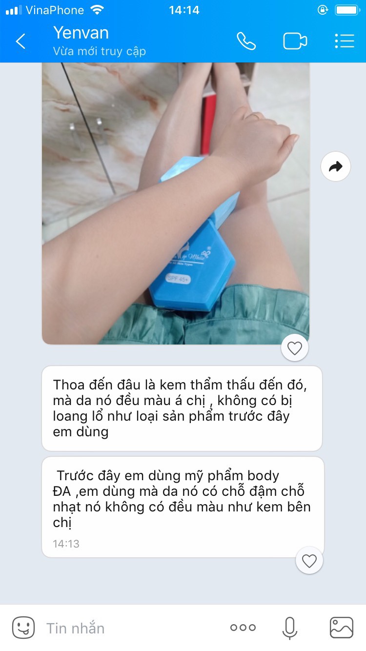 Phản hồi khách hàng dùng kem body truyền trắng vip white