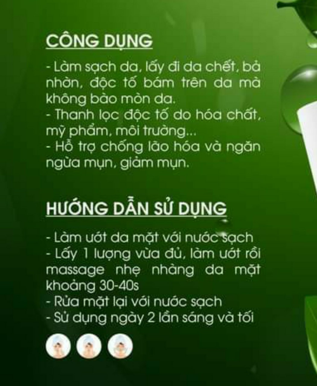 ⊳ Làm sạch da, lấy đi tế bào da chết, bả nhờn, độc tố trên da không làm mòn mỏng da.