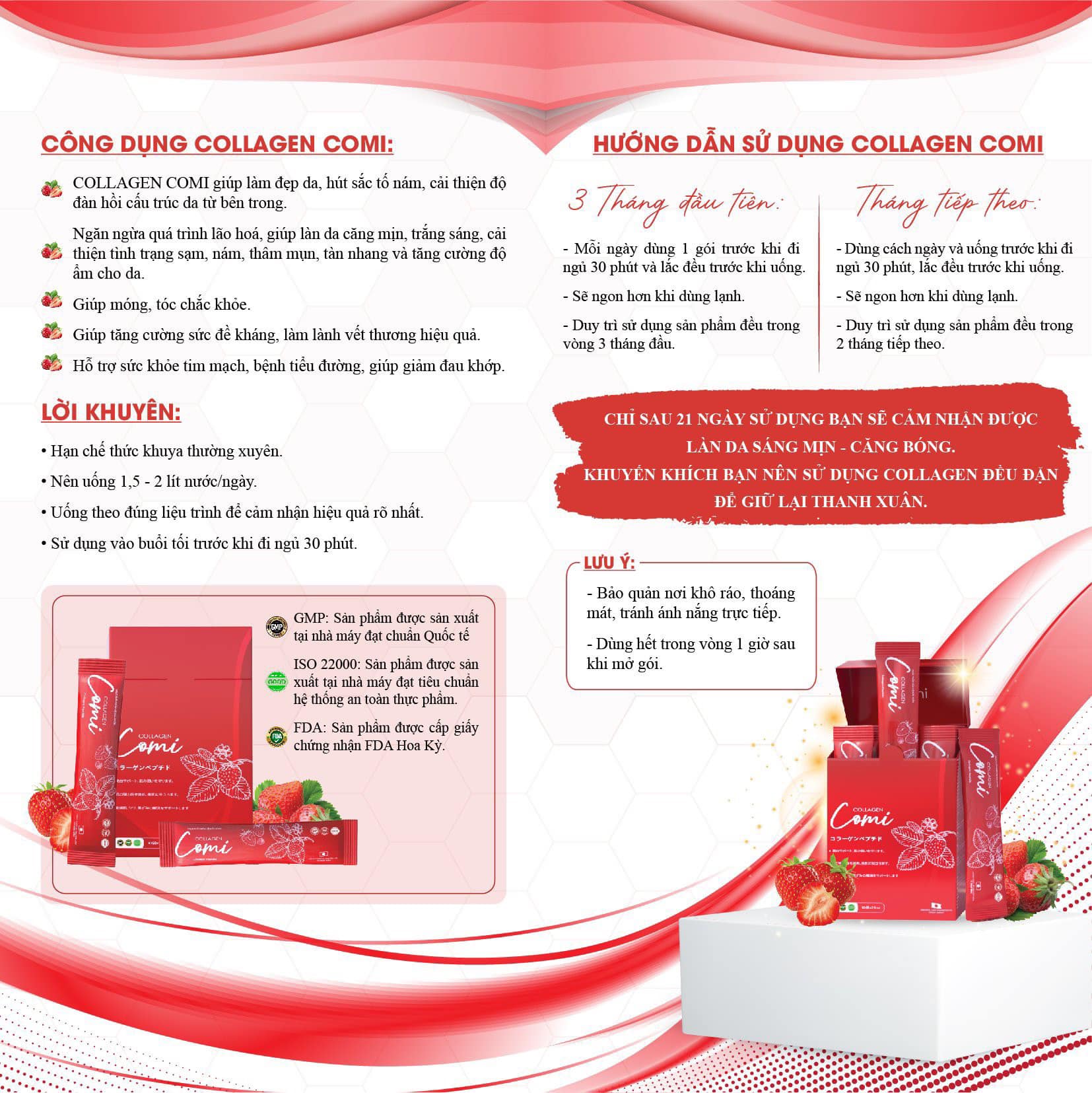 + Collagen Comi: Sản phẩm này thì không có gì để nói nữa. Từ lúc ra mắt đến giờ đã hot rần rần, tín đồ của Collagen dưỡng da chắc chắn đều nghe đến rồi. Chỉ cần uống 1 đến 2 lần mỗi ngày, làn da sẽ có những biến đổi rõ rệt khiến bạn bất ngờ và hài lòng với kết quả.