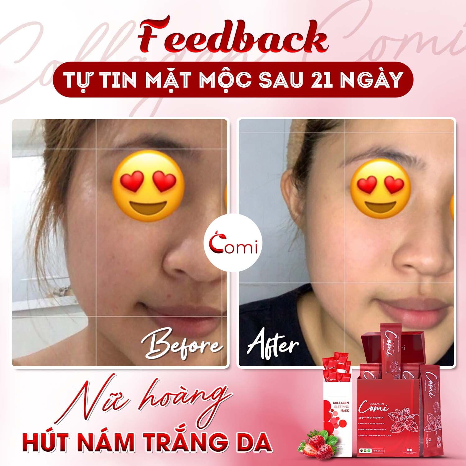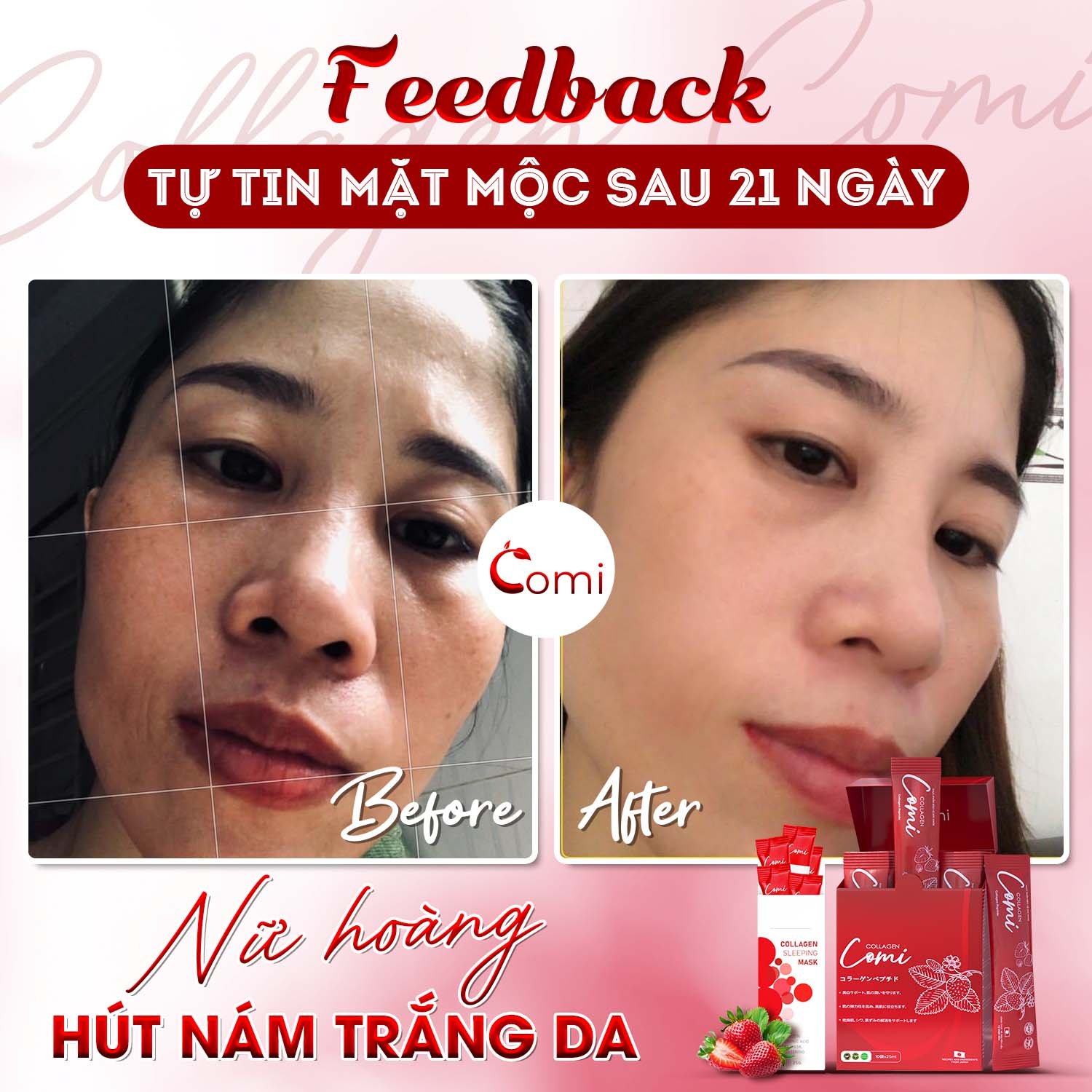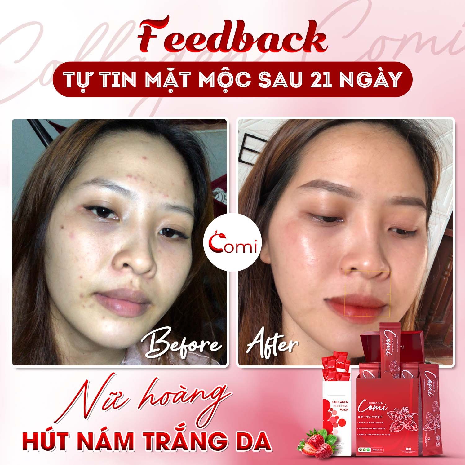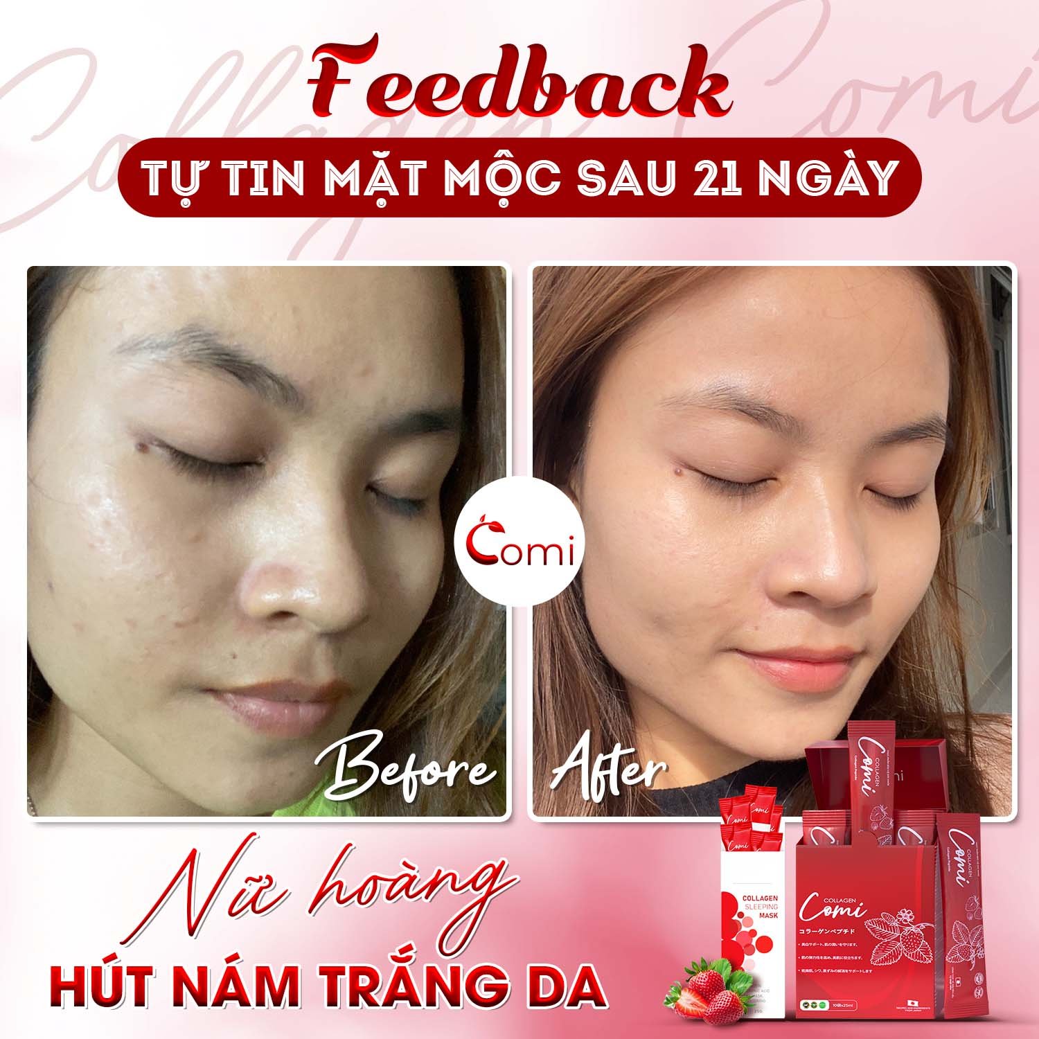 Chỉ sau một thời gian ngắn sử dụng, bộ đôi Comi sẽ khiến bạn bất ngờ với sự cải thiện của làn da mình.