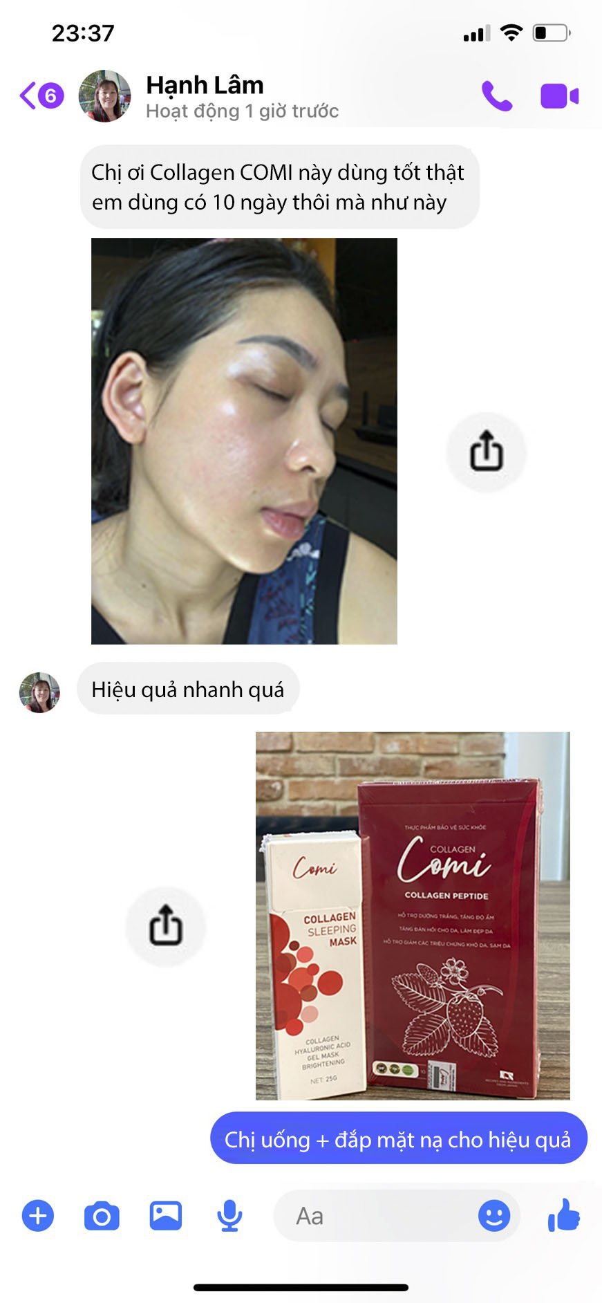 - Mặt nạ comi dùng tuần 2-3 lần, Dùng càng nhiều càng đẹp