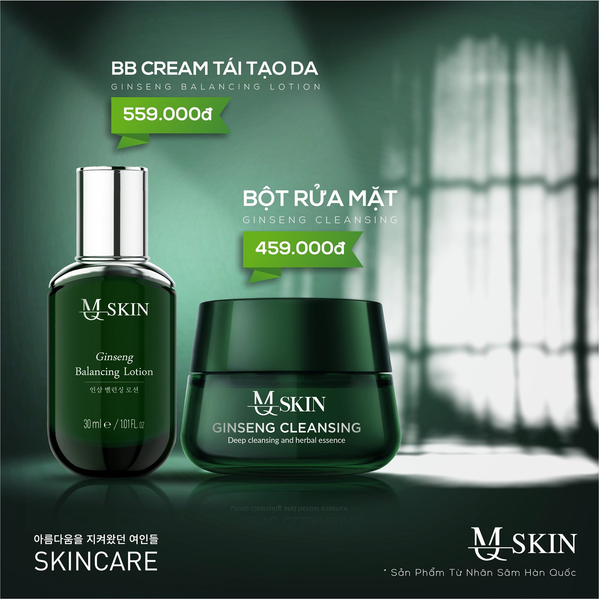 + Tái Tạo Da BB CREAM MQ SKIN với nhân sâm, chứa dưỡng chất có khả năng giúp chống lão hóa da, khôi phục làn da căng mướt.