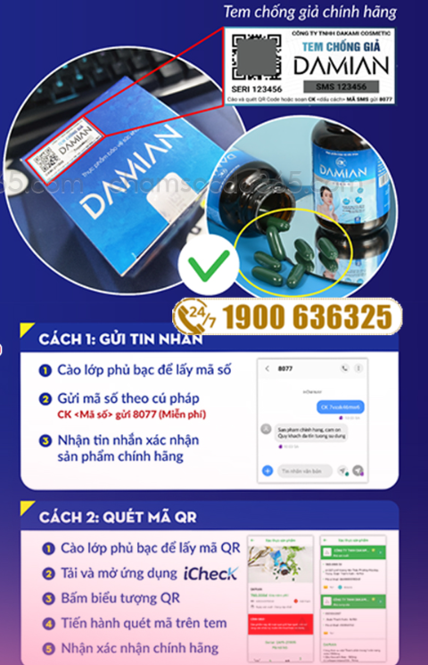 Cách kiểm tra viên uống trắng da Damian thật giả: