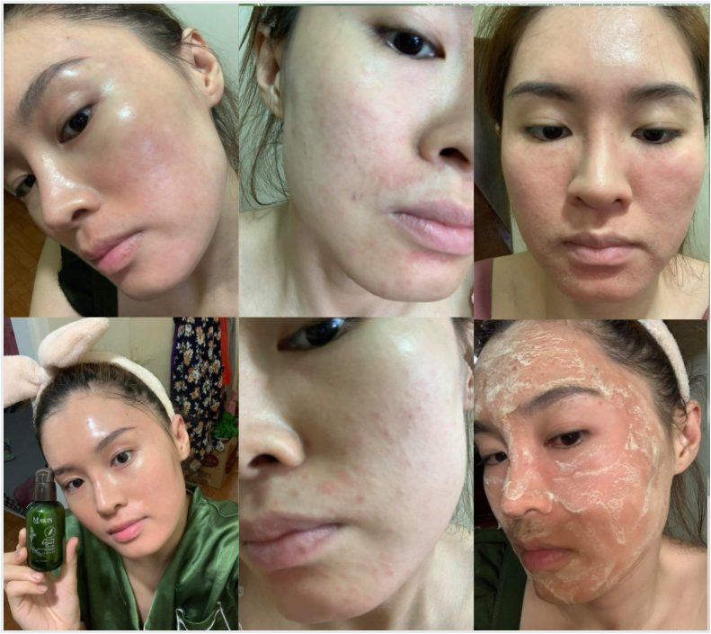- Với 1 số da bị bong nhiều là do trước đó đã sử dụng mỹ phẩm hoặc bị mụn ẩn. Có thể ngưng sử dụng 1-2 ngày nếu cảm thấy da bong sưng nhiều, nhưng không nên ngưng lâu sẽ mất tác dụng. Kiên trì sử dụng 1-2 chai sẽ hiệu quả.