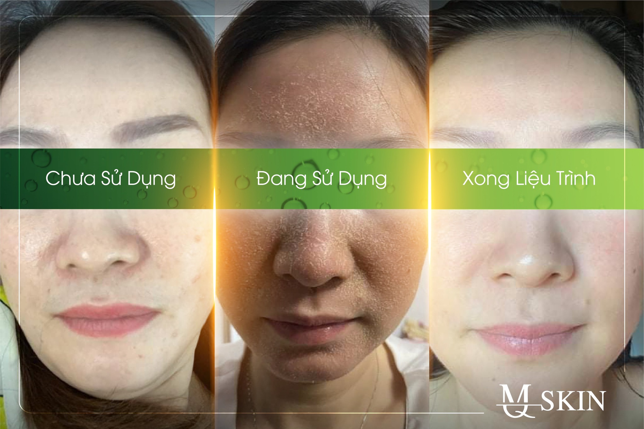 + Sau khi ngưng hẳn serum thay da mqskin da bạn sẽ còn 1 ít da bong li ti
