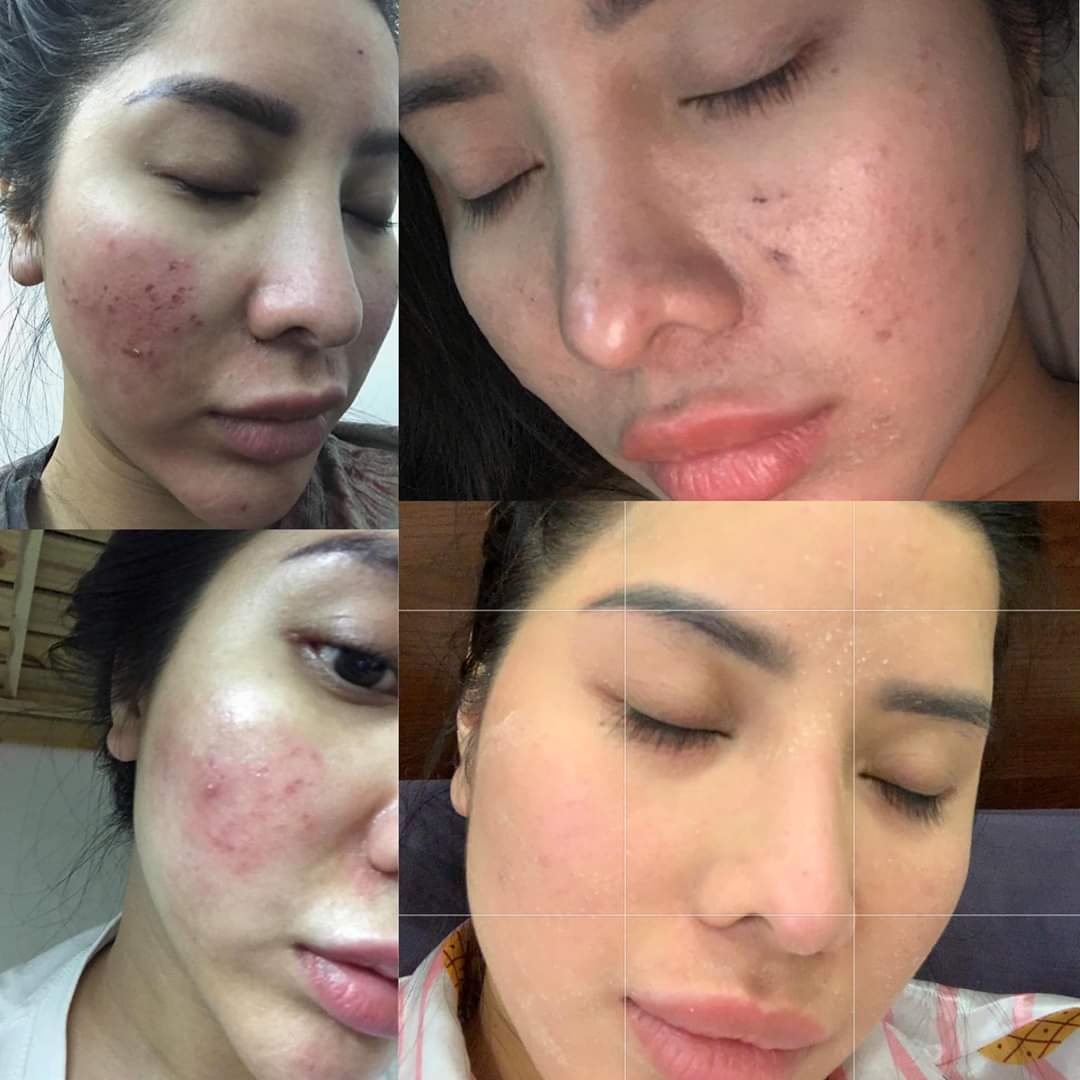- Với 1 số da bị bong nhiều là do trước đó đã sử dụng mỹ phẩm hoặc bị mụn ẩn. Có thể ngưng sử dụng 1-2 ngày nếu cảm thấy da bong sưng nhiều, nhưng không nên ngưng lâu sẽ mất tác dụng. Kiên trì sử dụng 1-2 chai sẽ hiệu quả.